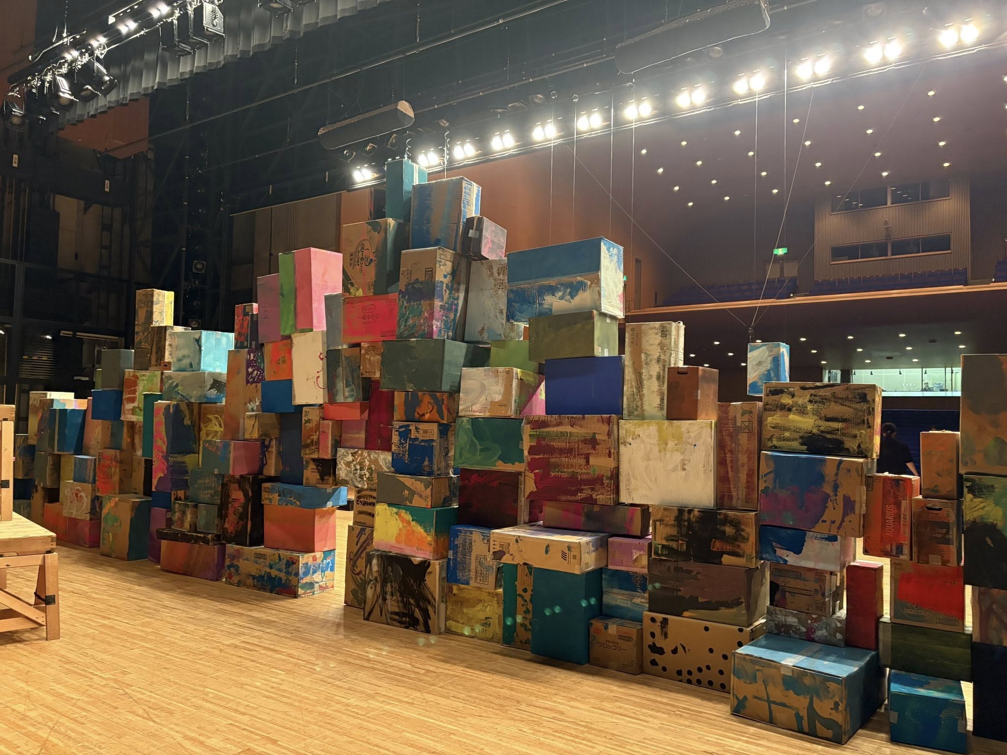 色とりどりの段ボール。300個ほどの中から200個ほどを使いました。